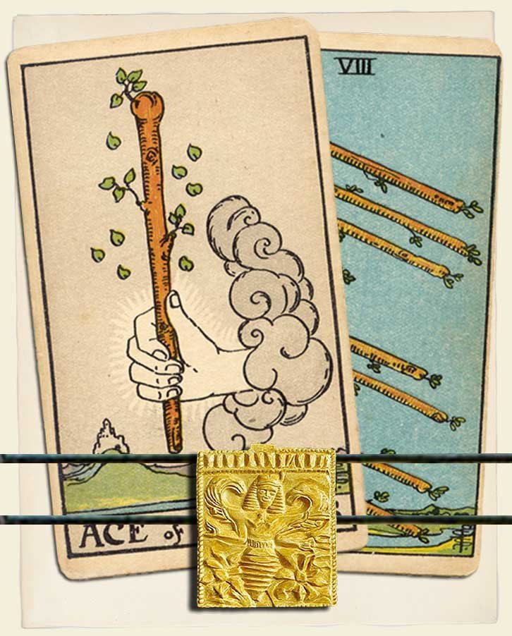 Ace of wands and Eight of wands combination means that two tarot influences: A) Energy (Ace of wands) and B) Alignment (Eight of wands) are steering you into another direction today. Have you been feeling like you are burnt out because you have been directing your energy in multiple directions? Sometimes, juggling too many things at once in life can make us feel so overwhelmed that we cannot even get one task completed. Your cards suggest that in order to accomplish your goals, you need to focus on what is important to you and align your energy so that you can carve out your own path and move forward in a way that feels rewarding and worth your efforts.