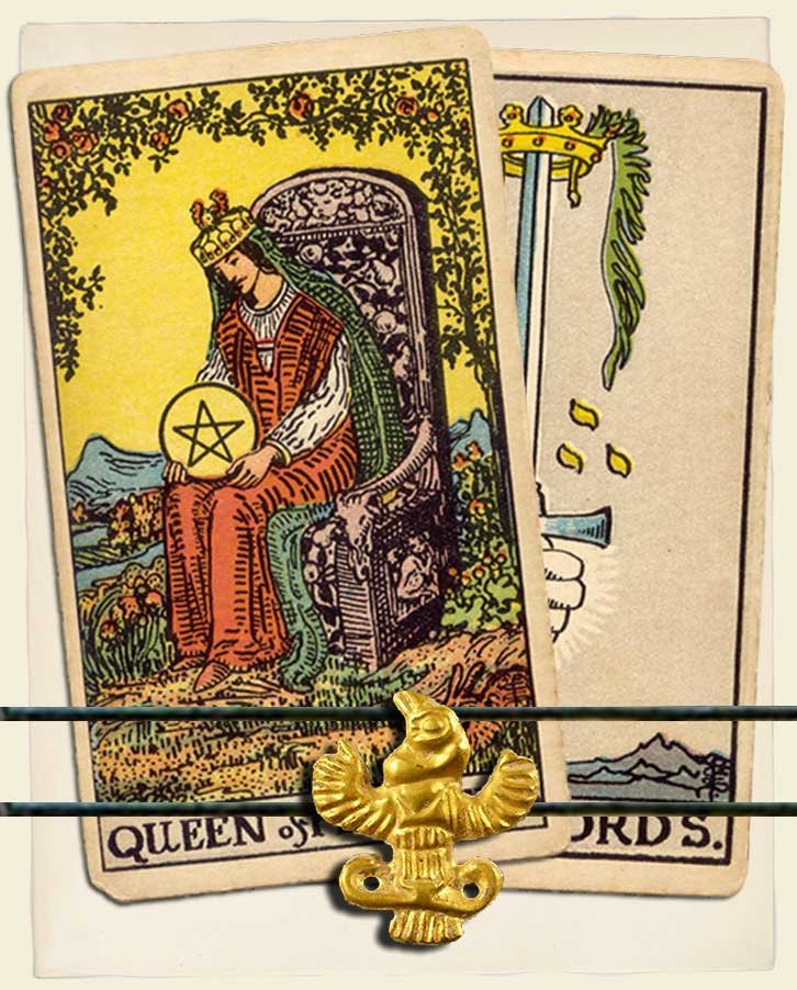 Queen of pentacles and Ace of swords combination gives a hint that two forces: 1) Generous (from the side of Queen of pentacles) and 2) Success (from the side of Ace of swords) are affecting your person at this moment. Most tarot readers would consider this a sign that you are in a powerful place, where success and breakthrough are right around the corner! It’s the perfect time to face and tackle challenges that stand in the way of this success. This combination also underlines the importance of the other and often overlooked aspect of wealth: which is the importance of feeling truly worthy of success and money once it comes to you. It is an invitation to ask yourself questions around how you will want to spend it and invest it, and If this is in alignment with your heart and highest self! When you get clarity on this, the success you will achieve will feel so rewarding and fulfilling to you.