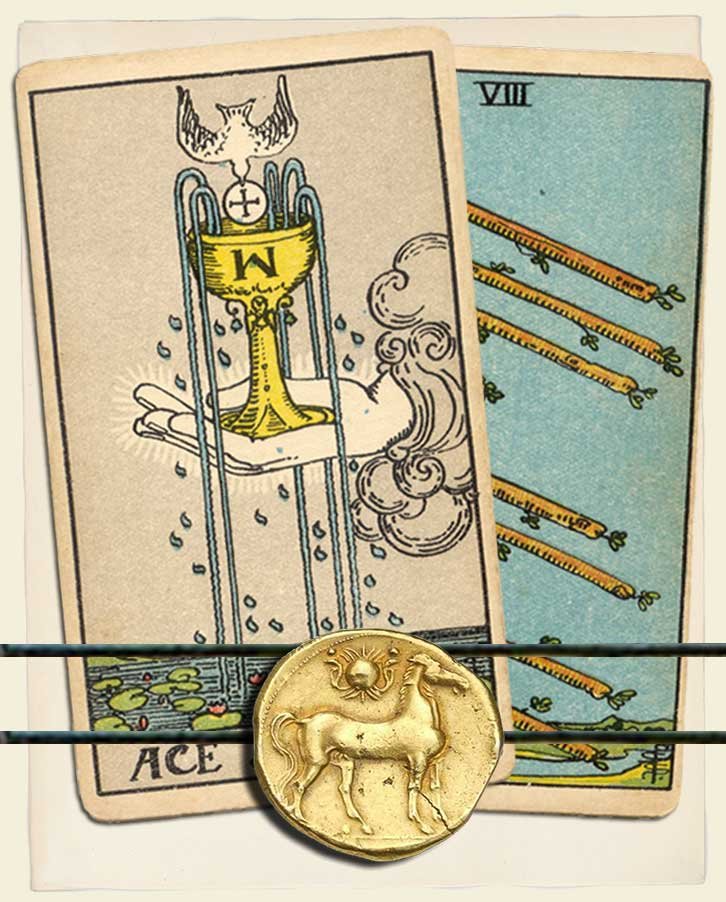 Ace of Cups and Eight of Wands combo interpretation