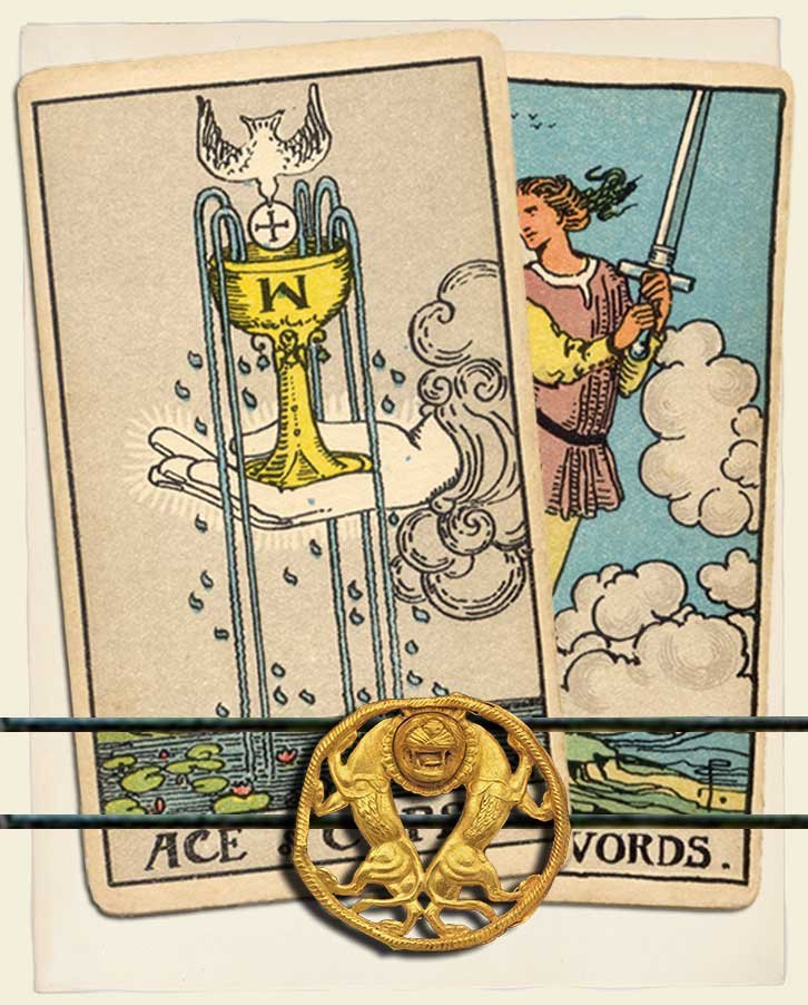 Ace of cups clarified by Page of swords indicates that two forces: 1) New Relationships and 2) Thirst For Knowledge are affecting you today, but sometimes when you see the Page of Swords he is not just thirsty for knowledge. He is downright nosy, and right now he‘s digging for information about your love life. It is up to you what you tell him, but he is not going anywhere until he gets something, and you can bet that whatever you give him will be repeated, probably to your boss, and your grandmother, so be sure of yourself before you talk. You can‘t unring the bell.