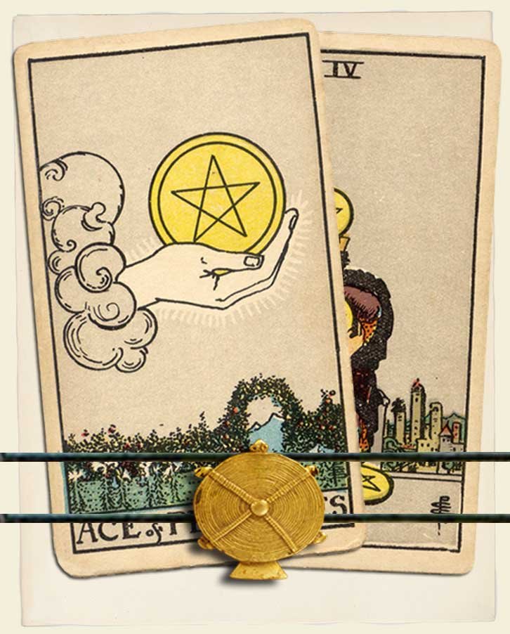 Ace of Pentacles and Four of Pentacles combo interpretation