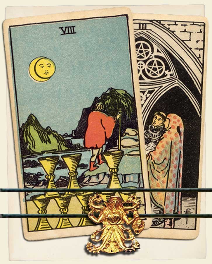 Here you can find the full lists of Eight of cups or Three of pentacles combinations, that go before and after your current combo.