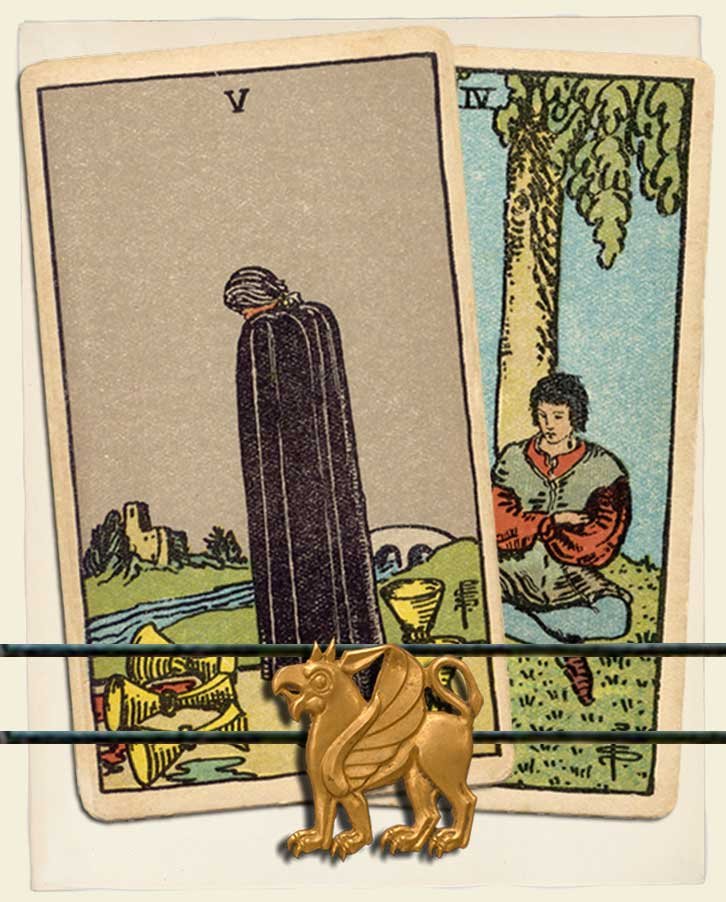 Five of cups and Four of cups tarot combination provides an insight into an event in your future. It is influenced by the arcane tarot forces of (A) LOSS and (B) MEDITATION. You may have suffered a loss, but it has left you feeling scattered and confused. This isn’t just about money or possessions. It is about something much more important to you that was taken from you without any explanation at all. Now, you are sitting alone in your room wondering how long this will go on before someone comes along to tell you what happened—and why they did it. Don’t worry too much about the details right now as you contemplate where to begin your meditation for peace-of-mind.