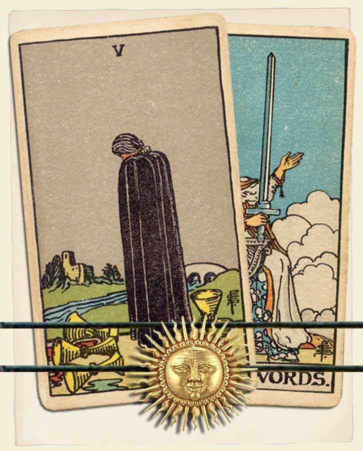 When it comes to love and relationships, the Five of Cups and Queen of Swords combination is a complicated one. The Five of Cups brings with it pain, loss, betrayal, defensiveness, and regret. However, this card also suggests that there is more to the story than what initially meets the eye. While something may be gone from your life now – whether that’s a relationship or dreams for the future – there may still be something salvageable in this situation. The two cups still standing behind the figure in the card suggest as much.