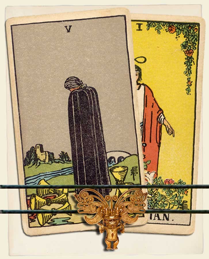 Five of cups and The Magician together indicates that two tarot influences: 1) Pessimism (Five of cups) and 2) Manifestation (The Magician) have influence on you at this moment. To put it differently, do you find yourself not very successful in getting all the things that you want and have dreamt of? Maybe it is your attitude towards your goals and towards yourself that is preventing you. You need to ditch pessimism and you need a more optimistic approach to life and most importantly, to yourself. You must believe in yourself, you have to hype yourself up and understand that without your own self-love you will not gain anyone else’s love or support and you will not be able to manifest the great things that your heart desires because pessimism often blocks manifestation.
