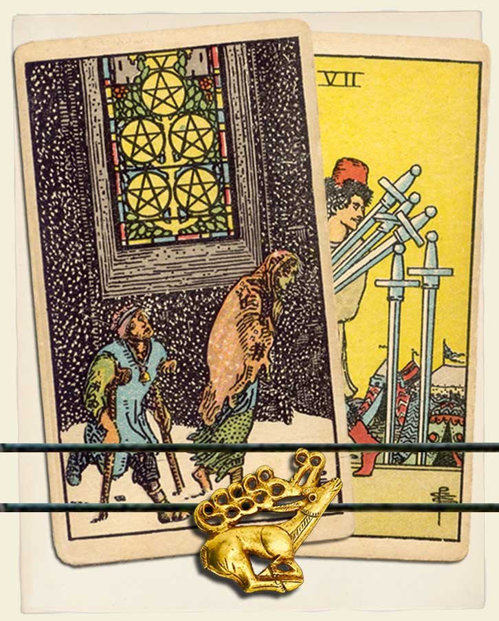 Five of Pentacles and Seven of Swords combo interpretation