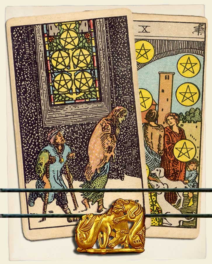 Five of Pentacles and Ten of Pentacles combo interpretation