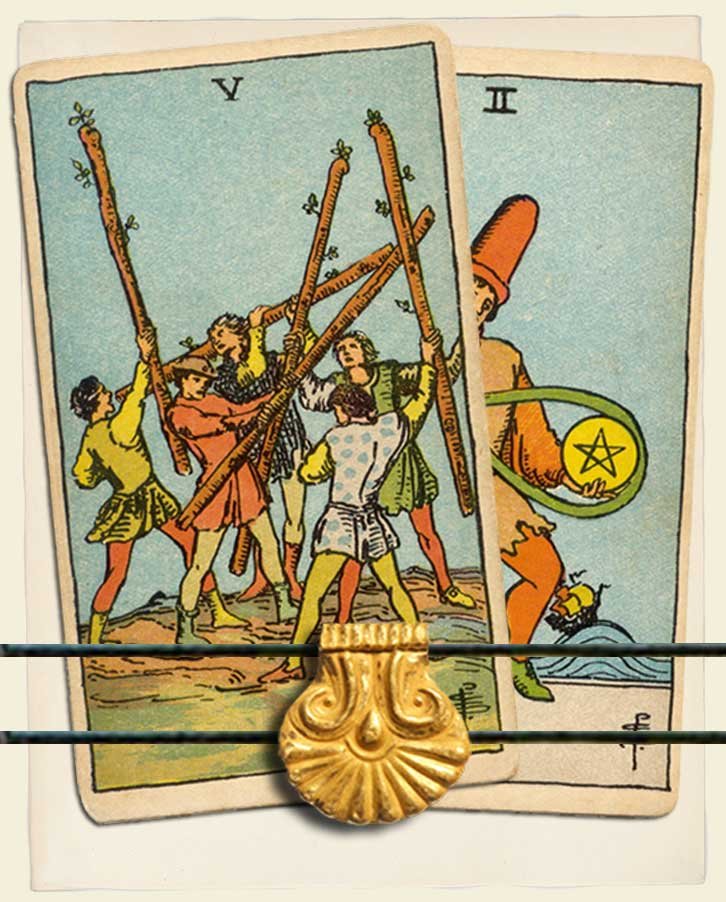 Five of Wands and Two of Pentacles combo interpretation