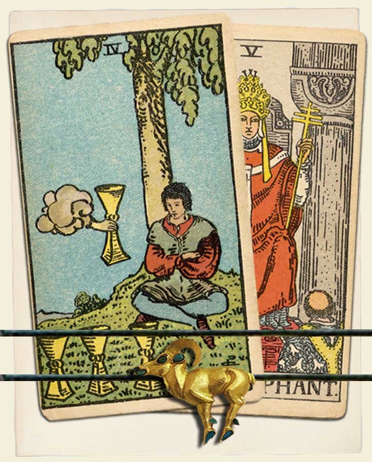 My dear friend, let us delve into the meaning of Four of cups and The Hierophant in love and relationships. This combination is considered neutral, but it gives you an insight into your medium-term future. It is influenced by two arcane tarot forces: contemplation and institutions.