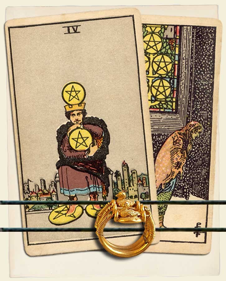 Well now, let me tell you folks about the Four of Pentacles and Five of Pentacles tarot cards when it comes to love and relationships. Now, this combination is considered quite unfavorable for matters of the heart. You see, these two cards represent saving money and a lack mindset, which means that there are some money or career issues going on that may be causing the person to withdraw from their partner.