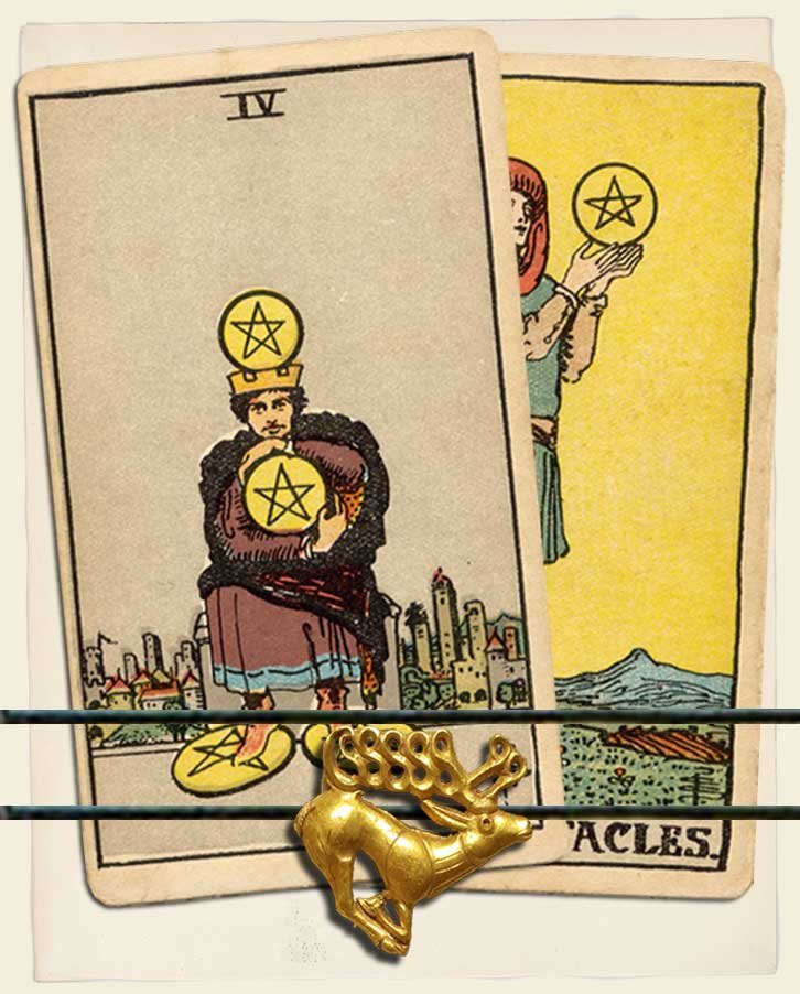 Four of pentacles and Page of pentacles combination means that two tarot influences: (1) Stability and (2) Planner are influencing you at the moment. In other words, the achievement of your goals may involve being very diligent and balanced. Planning in advance can be very helpful in order for you to earn the abundance you so desire. At the end of the day, let there be no excuses, no explanations, no regrets. Stability will come shortly after, assuring you material and emotional security.