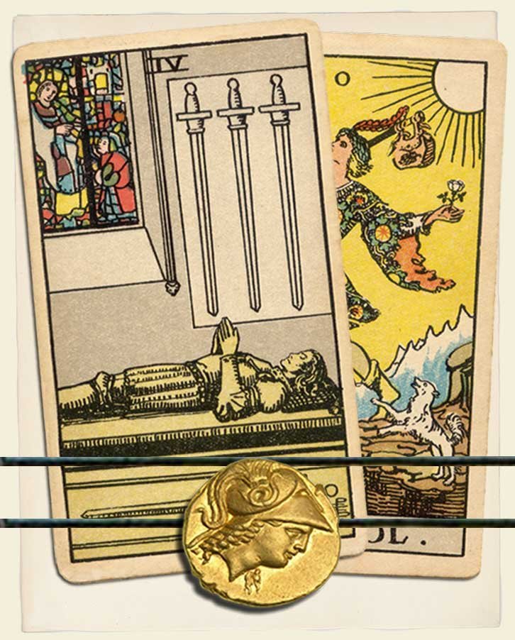 Four of swords and The Fool combination gives you a better insight into a significant event in your future. It is influenced by the arcane tarot forces of (A) MEDITATION and (B) INNOCENCE. If you find yourself in a situation where you need to make a decision, it is important to take some time to meditate on it. This will allow you to clear your mind and see the situation from all angles. It is also important to remember that sometimes the best decision is no decision at all. Sometimes, the best course of action is to simply wait and see what happens. This is especially true if you are unsure of what to do. Trust your instincts and be patient, because nobody knows everything about anything. The answer will come to you in time.