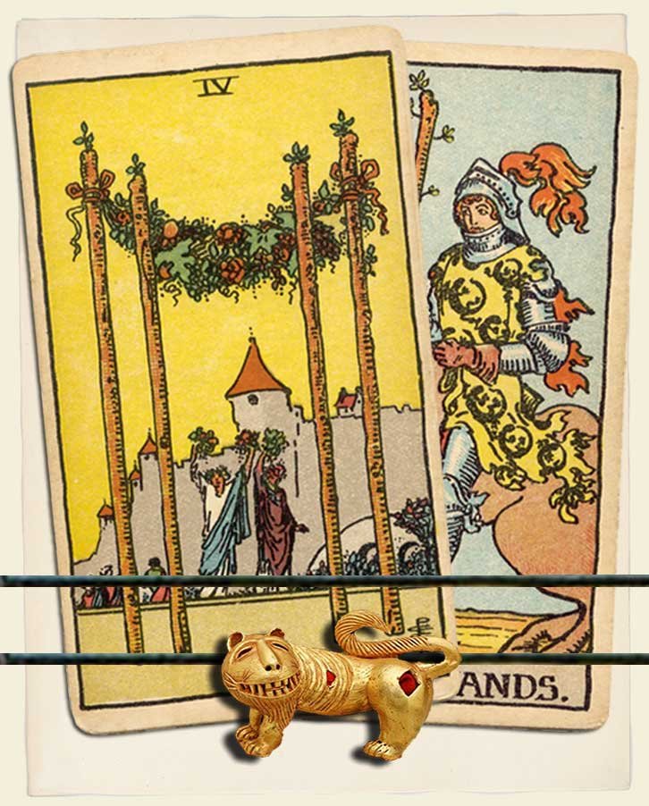 Oh, hello there! Let me tell you about the Four of Wands and Knight of Wands in love and relationships. This combination is a good sign because it represents celebration and courage. The Four of Wands suggests that you are ready to celebrate something important in your life, while the Knight of Wands indicates excitement but also recklessness.