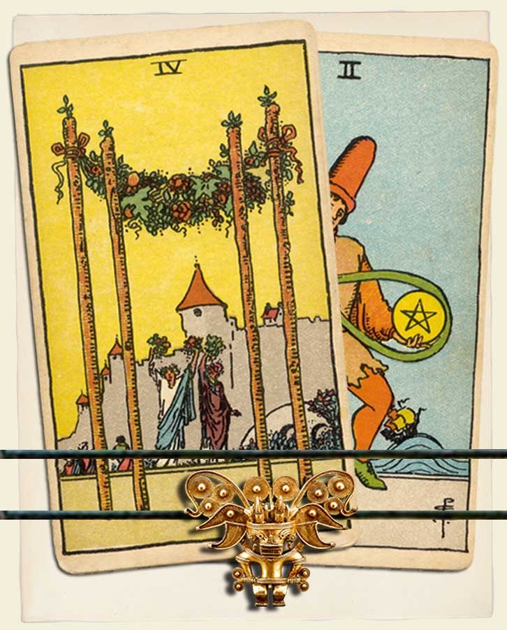 Four of Wands and Two of Pentacles combo interpretation