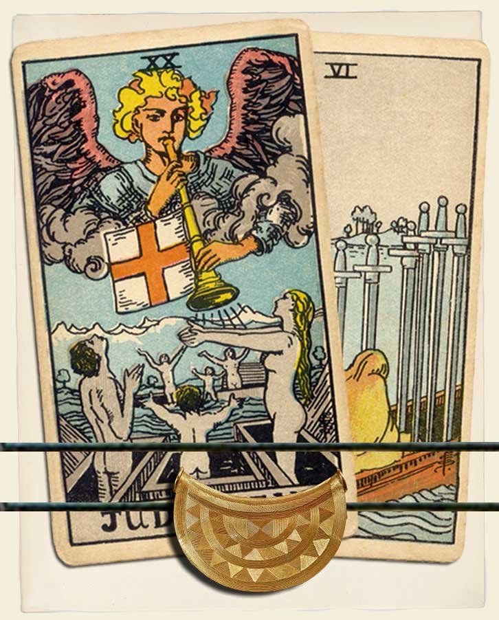 Judgement and Six of swords tarot combination gives an insight into an event in your future, which will come to pass from the combined effect of (1) JUDGEMENT (effect of Judgement) and (2) DISTANCE (effect of Six of swords). To put it differently, it indicates that although the actions a family member has recently taken seem foolish to you, you must let them discover the folly of this enterprise for themselves. They need to learn through this experience. Be ready to listen when the inevitable failure of their plan causes them to seek your advice. Be compassionate and if you have resources they need, be generous.