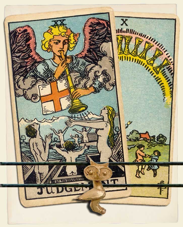 Judgement and Ten of cups combination provides an insight into your near future. It is directed by the guiding influences of (1) purpose and (2) divine love (Ten of cups). Before you decide what you want, think about the benefits. Before you start, think about the results. Soon so many good things will happen to you that you will wonder who I have done a favor for. God will illuminate your path, turn to him, and he will be your guide.