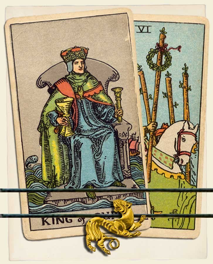 Oh, dear reader, it seems that you have stumbled upon a most fortuitous combination of cards! The King of cups and Six of wands are quite the pair when it comes to love and relationships. Let me explain.
