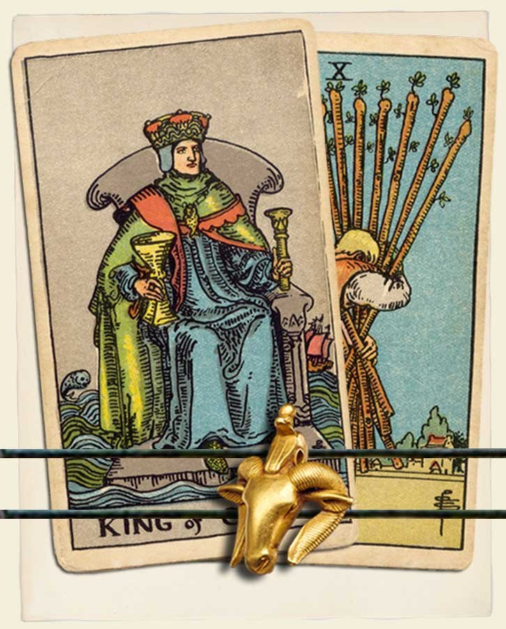 King of cups and Ten of wands combination provides an insight into a major event in your future, which is influenced by the arcane forces of ADVISOR and HARD WORK. This reading is a sign that you will need to listen to yourself. So far, you’ve sought counsel freely from your peers—and, sometimes, even your rivals. Well, there’s nothing wrong with that, per se. But isn’t it time you started learning to listen to yourself? Sure, it’s scary forging your own path—but give yourself a chance. If in doubt, fall back on your diligence—after all, that will get you far all by itself.