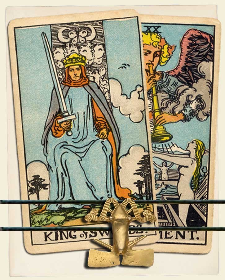 King of swords and Judgement combination gives a hint about an event in your future, which is influenced by the tarot forces of (I) AUTHORITY (from King of swords) and (II) RENEWAL (from Judgement). In essence, these cards are imploring you to take control of your life. So far, you’ve lived purely for the wishes of others. Well, is it any wonder you’ve grown despondent? You need to step out of their shadows. Sure, it’ll be scary at first—but what’s the alternative? Soon enough, you’ll find yourself flourishing in the light.