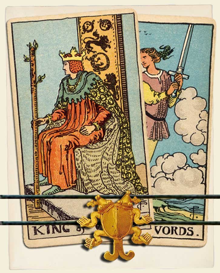 King of wands and Page of swords combination gives a glimpse into an event in your future, which is influenced by the arcane forces of (1) Boldness and (2) Communicative. This means that your being a good communicator, alert and witty, are in combination with that part of you that represents pure energy. Whatever you set yourself to reach, you are going to work hard to achieve it. Your aim is to stick to your plans in order to transform them into reality. You surely know how to take the lead, whether it‘s in love or at work, and that makes you respectable by your fellows.