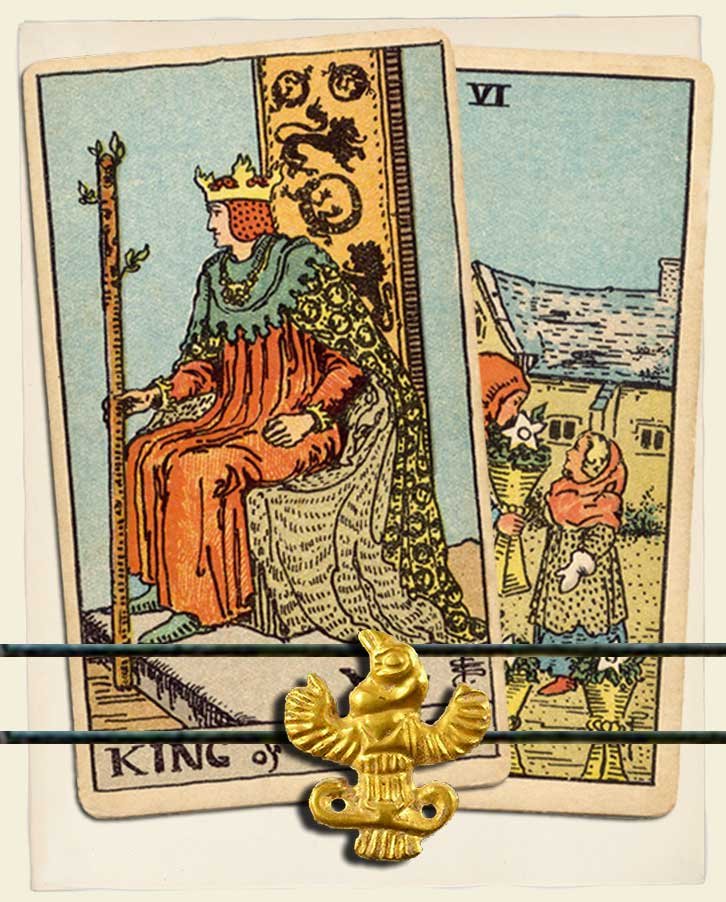 King of wands and Six of cups combination means that two forces: 1) Leadership and 2) Childhood Memories govern your life decisions today. This reading implies that you will need to draw on inner resources to overcome difficulties. The girl is the mother of the woman, as the poet says, after all. And part of you has always known this: there is an inner light that has guided you since childhood. Often, however, in adult life, this light becomes obscured by the glare of daily life. But, in darker times, like these, it becomes visible once again. You know what to do: follow it home. Others will follow.