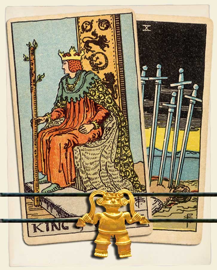 King of wands and Ten of swords tarot combination is an omen that tarot influences: 1) Taking Control and 2) Betrayal govern your life decisions today. In other words, it means you are being called to take action in your life to reclaim your power from current or past situations. You are reminded that you determine your reality & truth, and to leave the opinions of others behind you. Be grounded in yourself at this time, and exercise clear boundaries to protect your energy. You are being asked to push yourself outside of your comfort zone, so that transformation may occur.