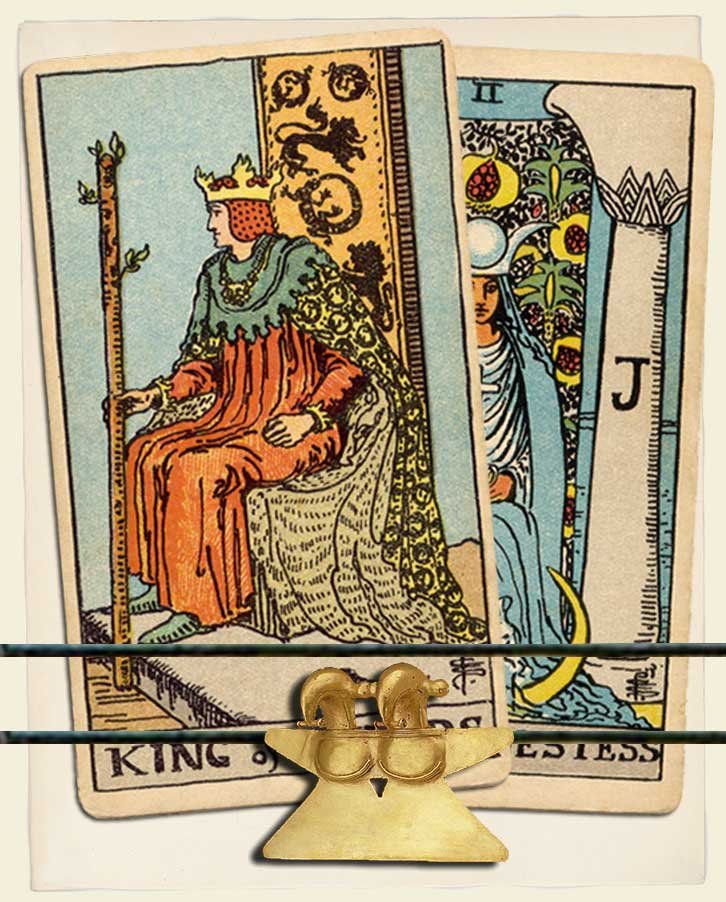 My dear, the King of Wands and The High Priestess combination is a sign that love and relationships are guided by both entrepreneurial instincts and higher power. It means that your intuition is leading you in making decisions for your relationships.