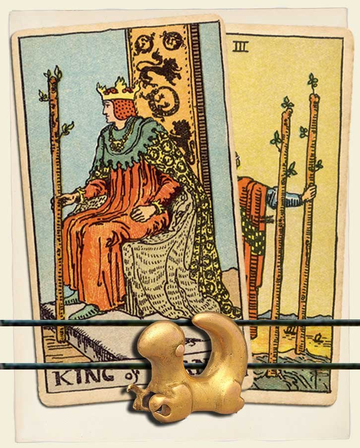 Whether it’s a relationship or a project that’s been overlooked or undervalued for too long, the King of Wands and Three of Wands combo says it’s time to take action before someone else beats you to it.