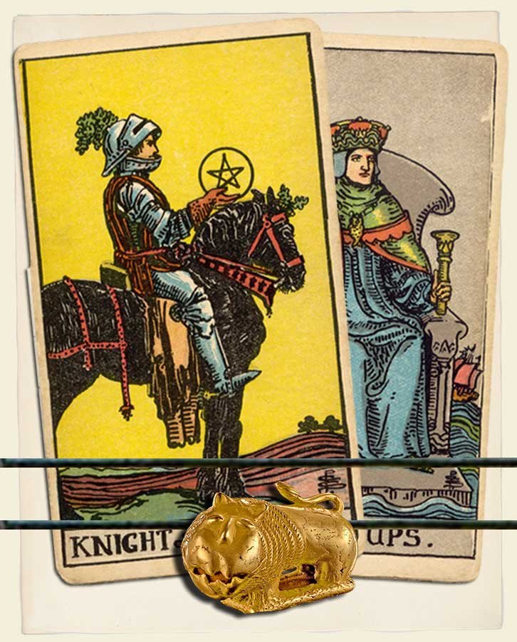 The combination of the Knight of Pentacles and King of Cups is a promising omen for love and relationships. It suggests that you will face a significant event in your romantic life, one that will require practicality and compassion.