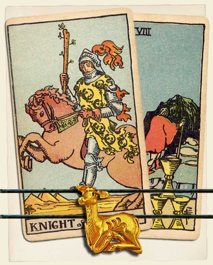 Knight of wands and Eight of cups tarot combination indicates that two tarot effects: 1) Impulsiveness (Knight of wands) and 2) Abandonment (Eight of cups) have influence on you at this moment. What’s the advice of this pair? The Knight of Wands is an adventurous, sometimes reckless energy that often carries a sense of invulnerability. This can be good because it allows for some fun in your life, but when combined with the Eight of Cups – which represents walking away from something important to you without fully processing why – it can create a risk factor. You may feel as if leaving will solve all your problems, but perhaps not taking time to process what has gone wrong will lead to more problems down the road.