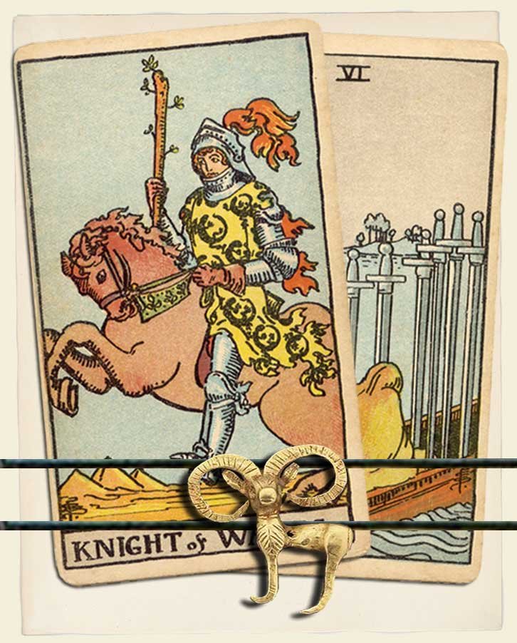 Greetings, my child. The Knight of Wands and Six of Swords combination is an interesting one when it comes to love and relationships. It suggests that two tarot influences are at play: energy and distance. The Knight of Wands represents a fiery, passionate energy that drives you forward towards new adventures and experiences, while the Six of Swords indicates a desire for change or movement away from something.