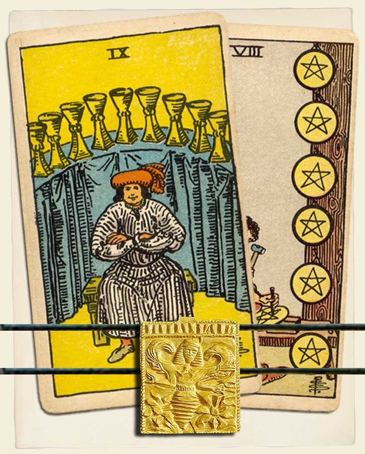 Nine of Cups and Eight of Pentacles combo interpretation