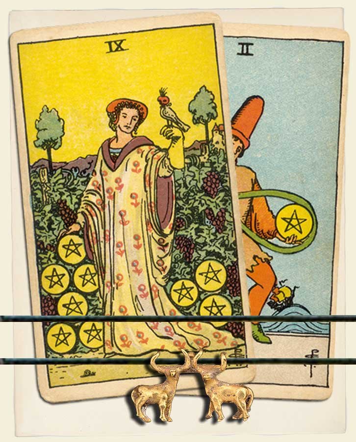 Nine of Pentacles and Two of Pentacles combo interpretation