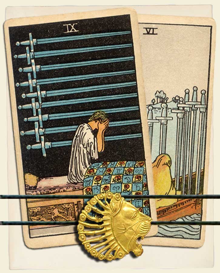 My dear child, the Nine of Swords and Six of Swords combination is a message from the spirits that you are facing some deep-rooted fears and challenges in your love life. The Nine of Swords represents the anxiety, worry, and nightmares that have been troubling you lately. You may be feeling insecure or paranoid about your partner’s loyalty or commitment to the relationship.