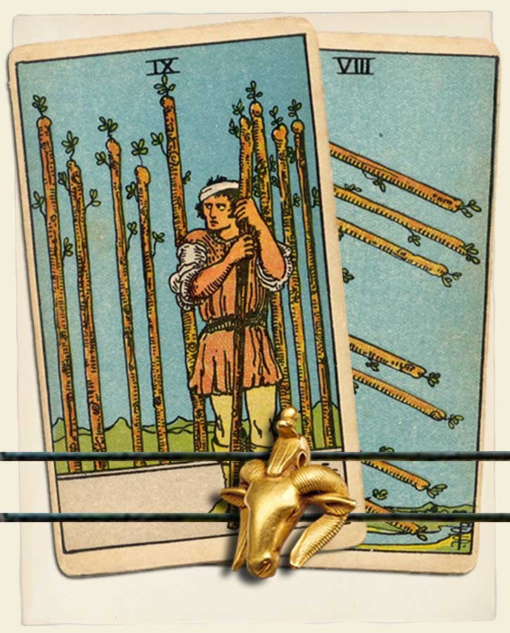 Greetings, young one. You seek wisdom regarding the Nine of Wands and Eight of Wands tarot combination and their meaning for love and relationships.