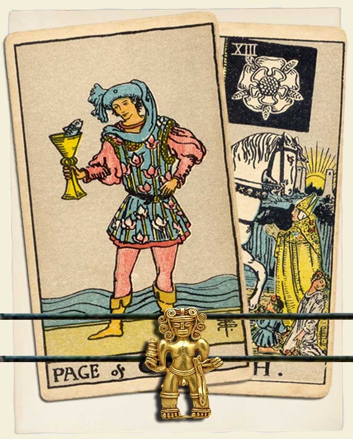 Page of cups and Death tarot combination gives you a hint about your near future. It will arise from the combined effect of: (I) dreamer (effect of Page of cups) and (II) change (effect of Death). How to interpret this tarot combination in practice? Most tarot readers would consider this a good omen that something important is going to shift in your life soon, perhaps even dramatically. The Page of cups indicates that there is an emotional need present that needs to be addressed before anything new can begin. This card also points to someone who may act as a messenger or guide for whatever it is you’re trying to achieve. In other words, don’t wait around hoping things will happen on their own. You have work to do if you want things to change.