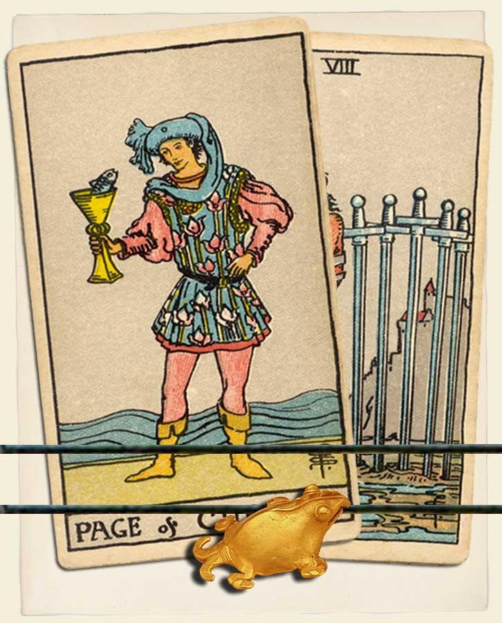 Page of Cups and Eight of Swords combo interpretation