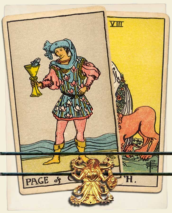The Page of cups is about hope and new beginnings in romance. Maybe you’re gonna get proposed to or have a baby soon – that’s what this card can mean. And if you’re single, then someone is definitely checking you out.