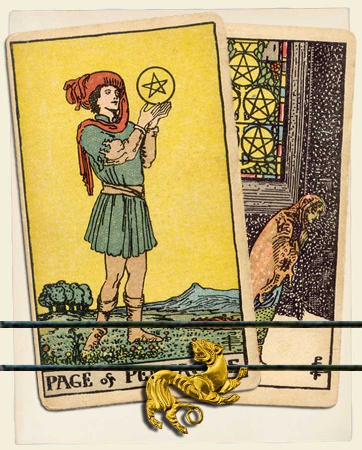 Page of pentacles and Five of pentacles together give you a divination about your near future, which is influenced by the tarot forces of (I) PLANNER and (II) WORRY. A pair of Pentacles has revealed itself to you in this reading. What this means is that you are in the planning stage of a new project. It might seem small and insignificant now, but it is much more important than you realize. You recently suffered a serious financial setback, so maintain focus. The cards warn that the difficulties will persist for a while, but you will emerge from them in a better position than you were before.