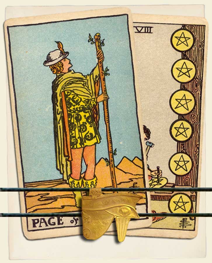 Page of wands combos, Eight of pentacles combos