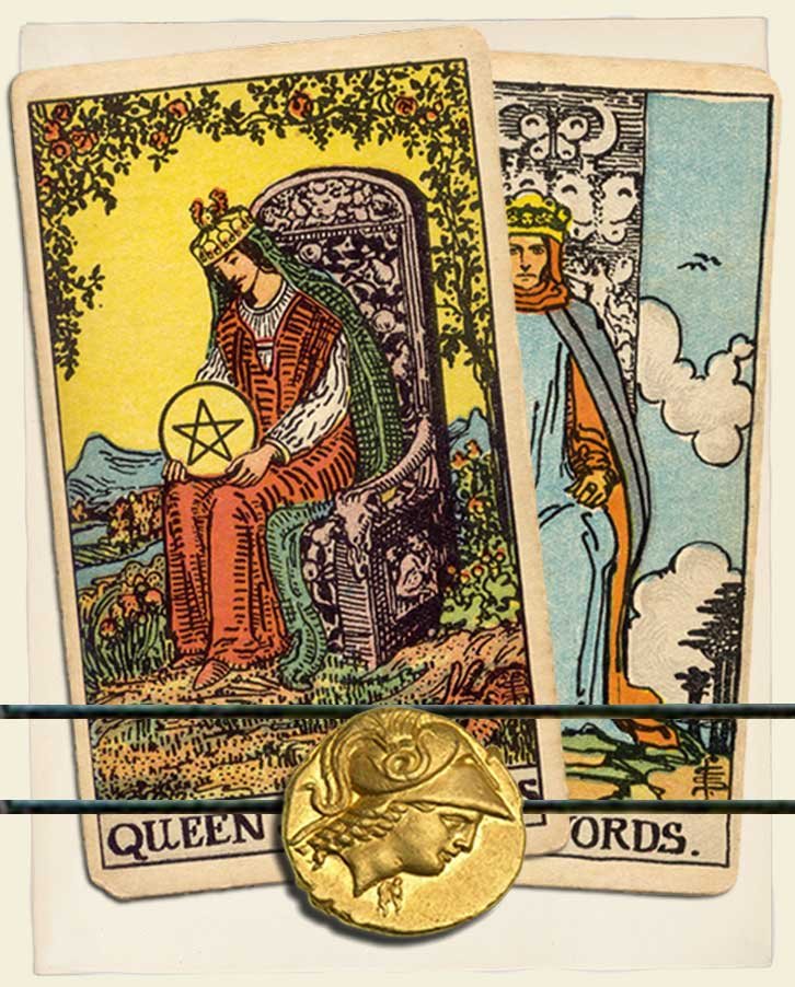 Queen of Pentacles and King of Swords combo interpretation
