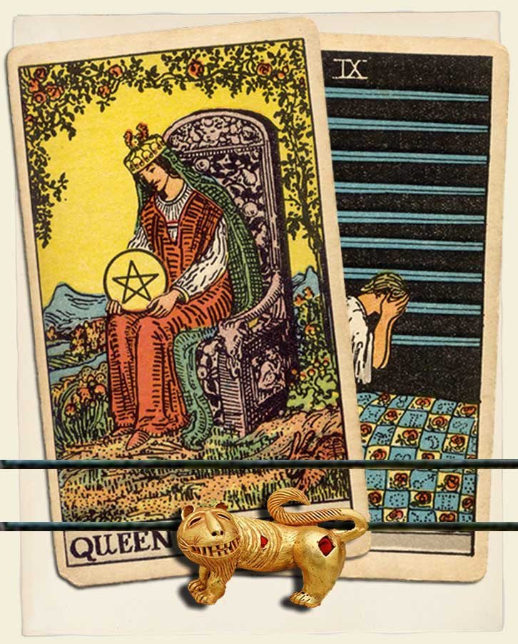 Queen of pentacles and Nine of swords combination is an omen that two arcane forces: 1) Nurturing and 2) Despair have influence on you at this moment. To put it differently, it means that although you have put the work into a project or a relationship and things seem to run smoothly, there is something that is keeping you up late at night. Everyone else thinks you are secure, everything is going great, and although you can’t quite put your finger on it, you still feel an impending disaster approaching. Fear grips you as nightmares haunt your dreams. Still, are you sure this isn’t just your imagination? Take a breath and think about it, and if you are still sure, plan to defend yourself, and if not, try to get some rest.