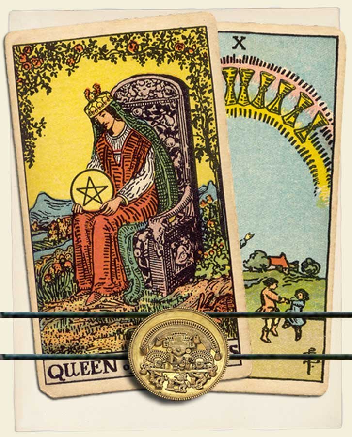 Queen of Pentacles and Ten of Cups combo interpretation