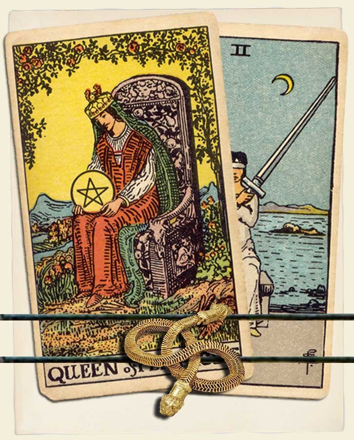 Queen of pentacles and Two of swords combination provides an insight into your medium-term future. It is influenced by the tarot forces of (I) CARING (from Queen of pentacles) and (II) DIFFICULT CHOICES. Most tarot readers would consider this a kind of “Sophie’s choice” happening in your life: you will not be able to save everyone, or be there for all the people that need you. Do not blame yourself, for your time and your resources are limited. At the end of the day, the last energies you possess need to be employed for yourself.