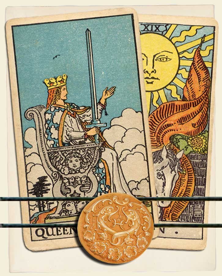 Queen of swords and The Sun combination gives a glimpse into your actual state and close future. It will arise from the combined effect of: (I) Direct Communication (effect of Queen of swords) and (II) Fun (effect of The Sun). What’s the advice of this pair? You are in an excellent position to have clear conversations with people around you, because you are listening more than ever before. This is a good time for conflict resolution or any kind of direct communication that requires being on your game. There is no better time to speak up about things that need changing, so don’t hold back now. Be sure to listen as well as talk, though. Don’t just absorb information without processing it.