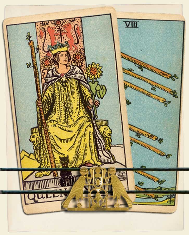 Queen of wands and Eight of wands combination means that two mystic forces: A) Social Butterfly (Queen of wands) and B) Action (Eight of wands) are altering your life path at this reading. What’s the advice of this pair? The Queen of all cards is a social butterfly, someone who loves to meet new people and share their stories. This card indicates that you may be feeling compelled to do the same thing. The Eight of Wands represents swift forward movement toward an important goal. You have something you want in your sights, but it will take some hard work to get there. Take advantage of the energy provided by the Queen of Wands to motivate you as you move forward with plans you’ve been making for a while now.