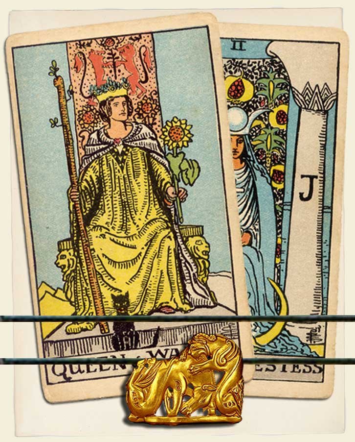 When it comes to matters of love and relationships, the combination of The Queen of Wands and The High Priestess is a very good sign. It provides insight into your future, which is influenced by both confidence and spirituality.