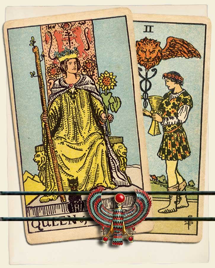 Queen of Wands and Two of Cups combo interpretation