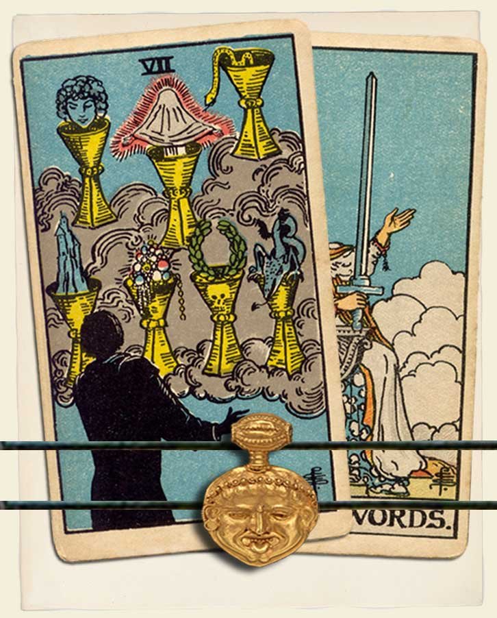 Seven of cups and Queen of swords combination indicates that two tarot influences: A) Choices (Seven of cups) and B) Independent (Queen of swords influence) are influencing you at the moment. In other words, you have always secretly wanted independence. You can just imagine a life where there is no one to ask for their opinion or explain yourself to anymore. If you want it, you just go out and get it, but when you have the Seven of Cups with the Queen of Swords, this care free nomad lifestyle has taken on an unrealistic illusion. Sure, it is empowering, but it is also lonely and cold, so think about that too. If you have a bird in the hand, you might want to keep it.