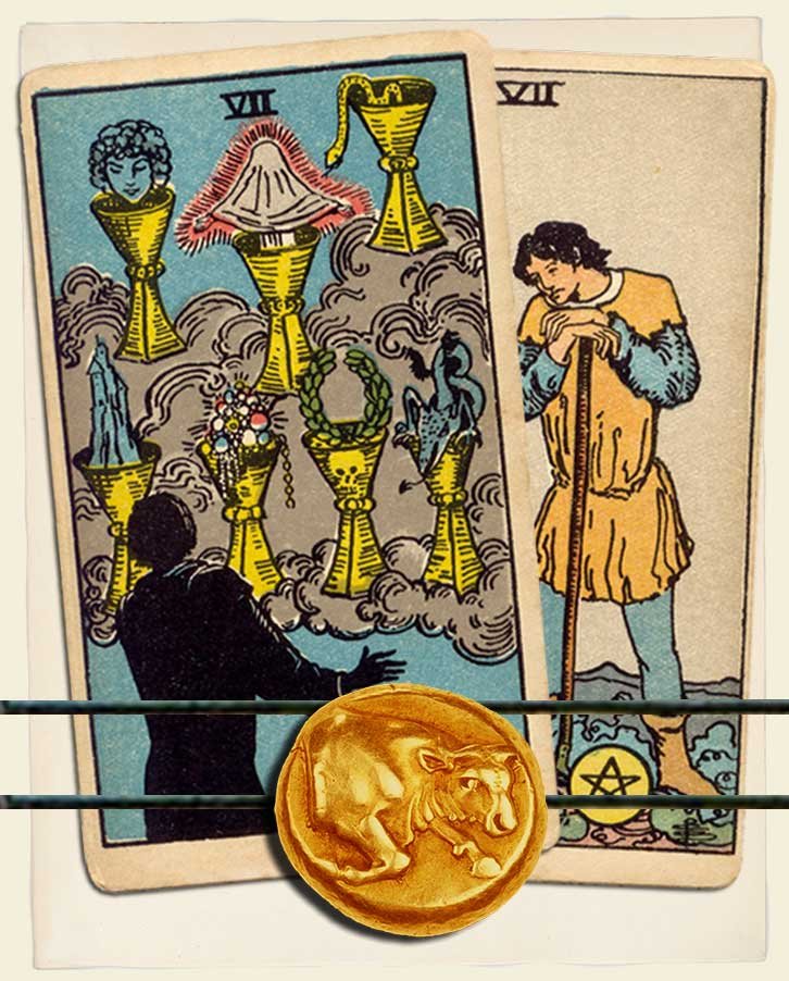 Check out this link to learn more about the Seven of Pentacles and Seven of Cups combination reading with insights for love relationships!